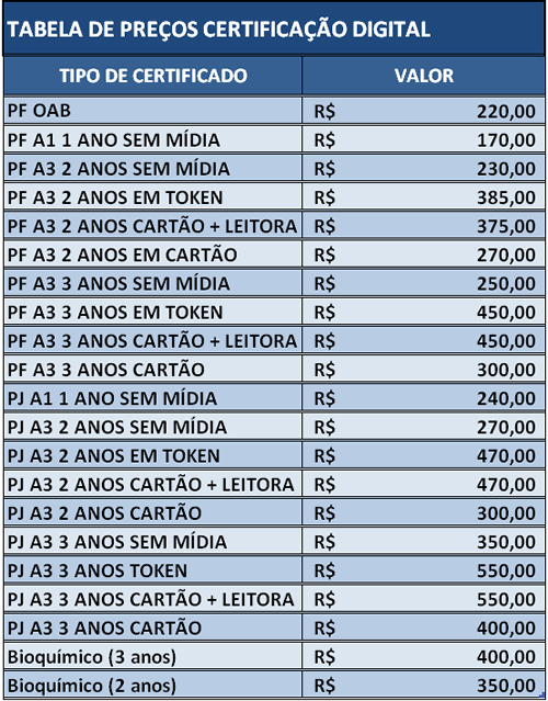 Associações: Estatuto, Ata de Eleição e Ata de Posse do Presidente e da atual Diretoria (Original), e Cartão de CNPJ. Documentos de Identidade Pessoal (CNH ou ID e CPF) e Comprovante de Residência de Água ou Luz, caso não tenha preecherá uma declaração no momento da Emissão do Certificado Digital.;