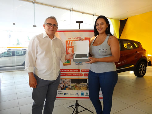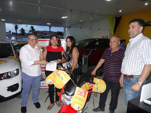 Getúlio Vale - Presidente da CDL; Josaneide Brito - ganhadora da Moto; Elissandra - Vendedora; José Carlos -Presidente da ACIM e Sérgio Freire - Presidente Sinduscom