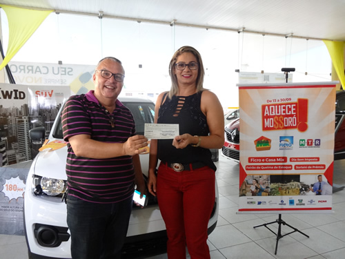 Em clima de celebração, as entidades CDL Mossoró, ACIM, SINDUSCON e SINDIVAREJO entregaram, na tarde desta quarta-feira (08), na sede da concessionária Renault Gamboa, bairro Santo Antônio, os prêmios do Aquece Mossoró 2017 aos ganhadores da promoção. Animados, os premiados falaram da alegria de participar desse momento.